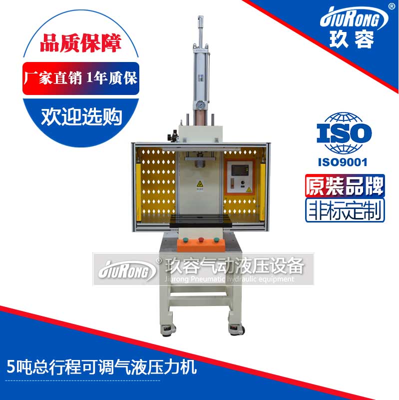 5T總行程可調(diào)氣液增壓機為非標(biāo)定制設(shè)備,5噸出力的氣液壓力機產(chǎn)品。產(chǎn)品最大的特點是:總行程可調(diào)。設(shè)備采用JRC總行程可調(diào)氣液增壓缸作為氣動執(zhí)行元件,采用PLC控制,方便操作簡單方便舒適,可搭配1t、3t、5t、8t、10t氣液增壓缸使用。